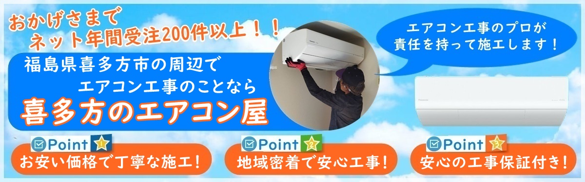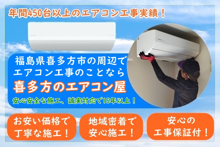 喜多方のエアコン屋は家庭用のエアコン工事を主にエアコン取り付け・取り外し工事をおこなっている地域密着のエアコン業者で、喜多方市を中心に福島県で活動しております。
